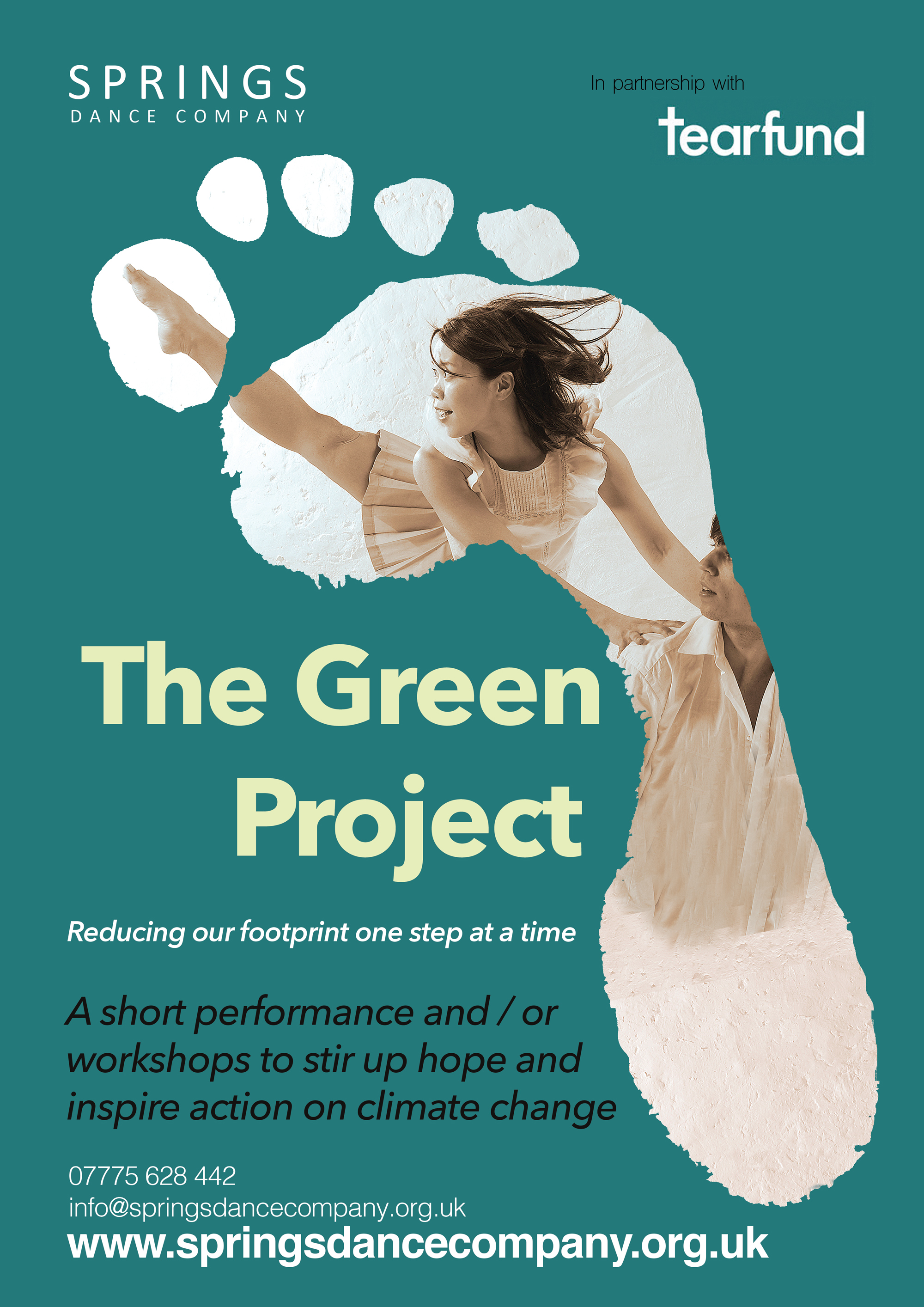 Naomi (Assistant Director, Springs,9 years) and Dan (formerly of Ad Deum Dance Company, now directing Infusion Physical Theatre, Cambridge) will lead a contemporary dance workshop exploring issues of climate change, based on Springs’ Green Project, in cooperation with Tear Fund. Come experience the breadth and depth of the issue, and explore the hope and impact we can have as individuals through the vitalizing medium of dance.