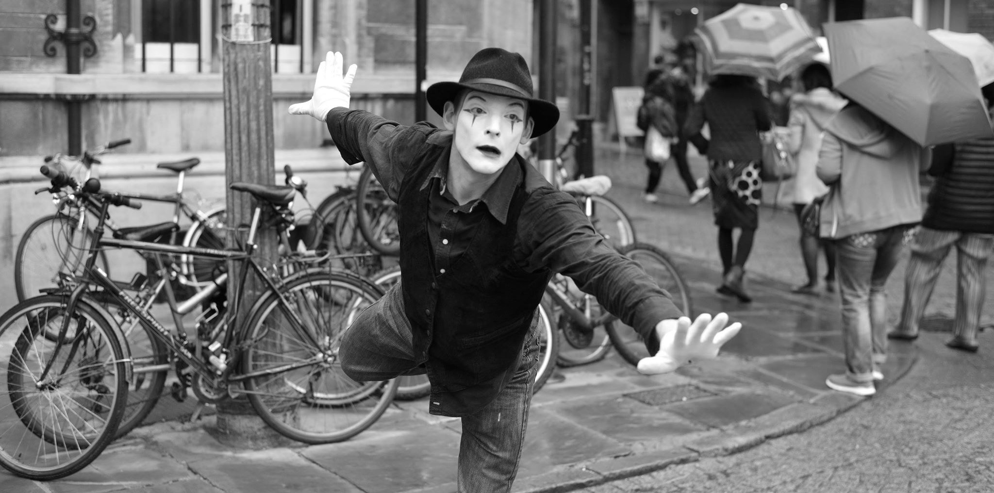 Catch Dan’s street mime at outside the Lion’s Yard, halfway down Petty Cury from 12:00-13:00, and again at Fisher Square (near the Corn Exchange) 14:00-15:00!