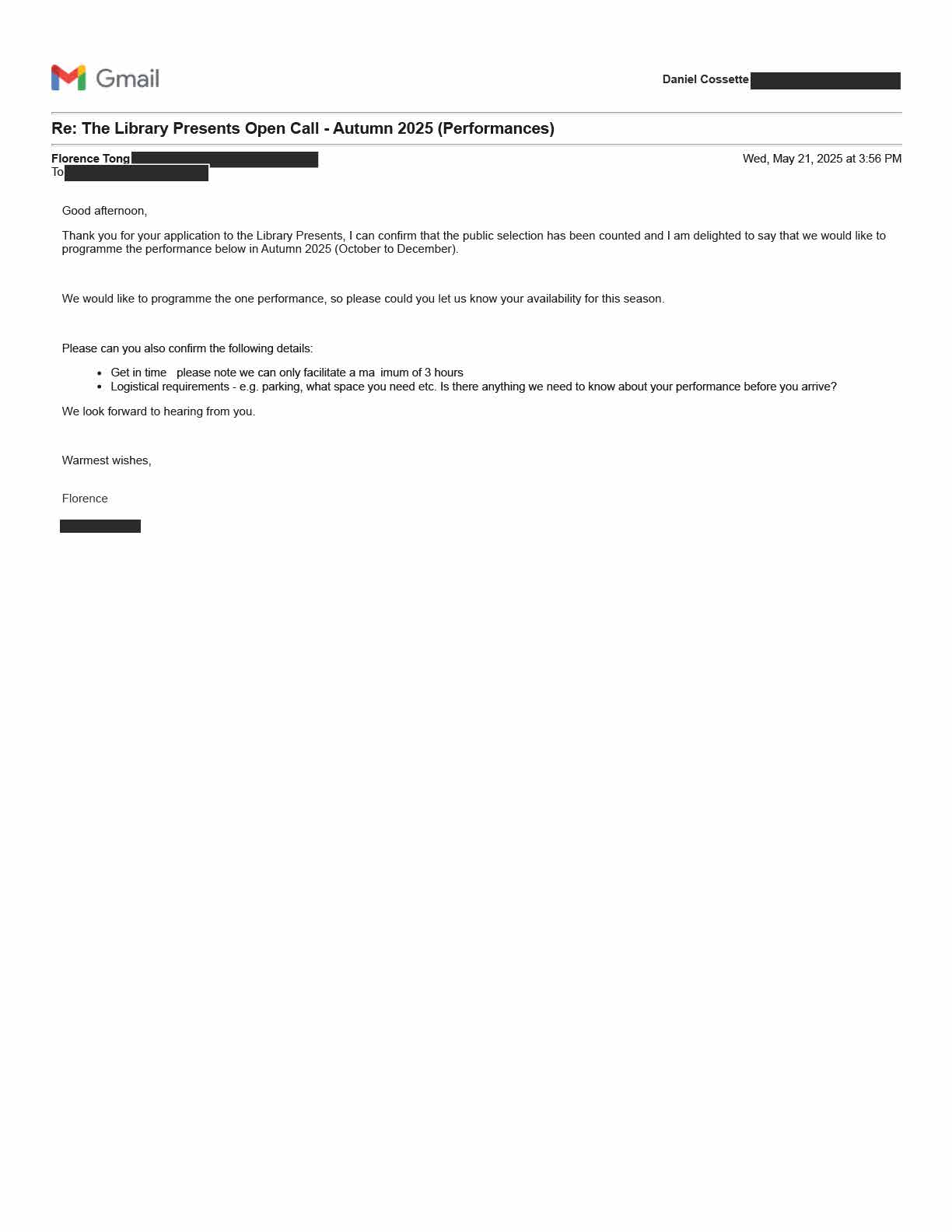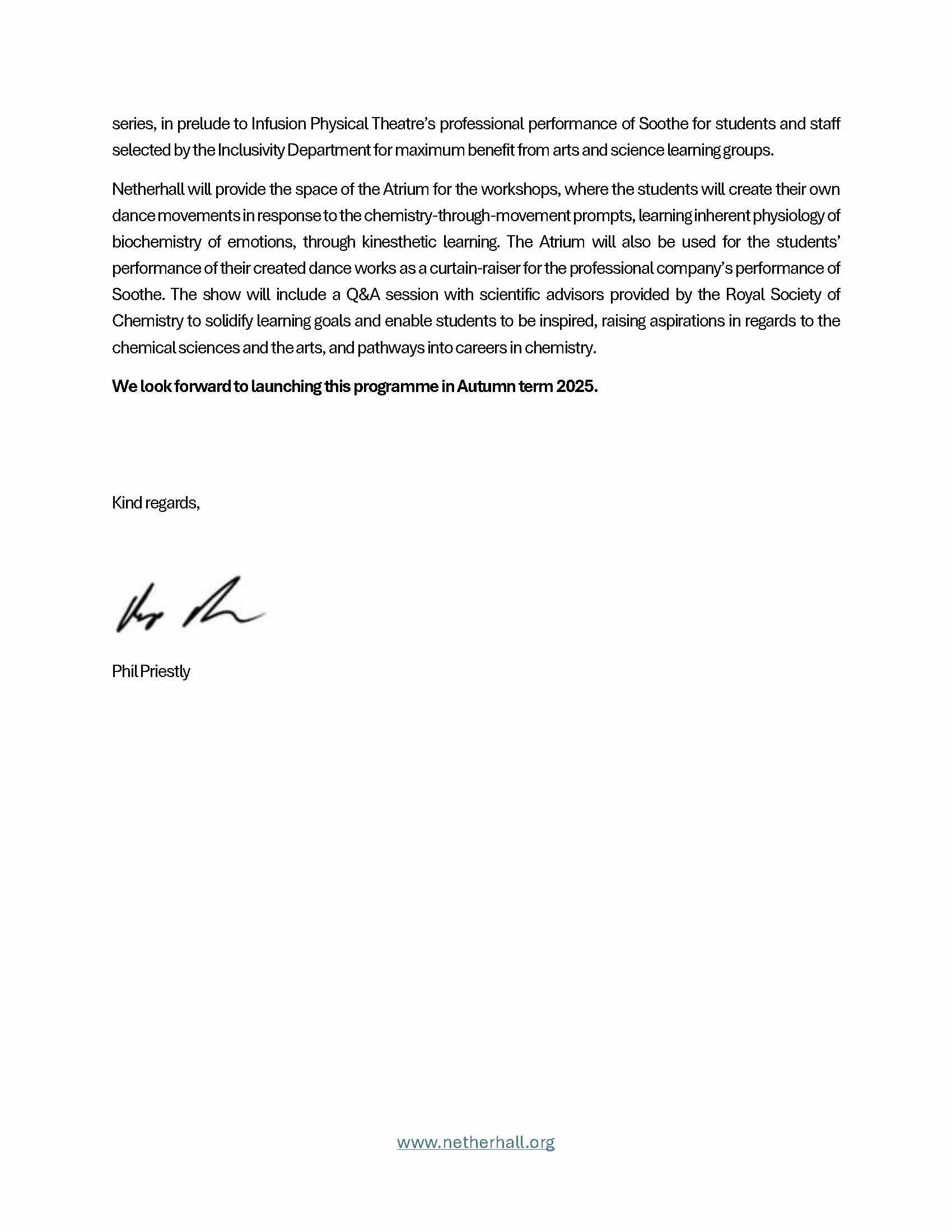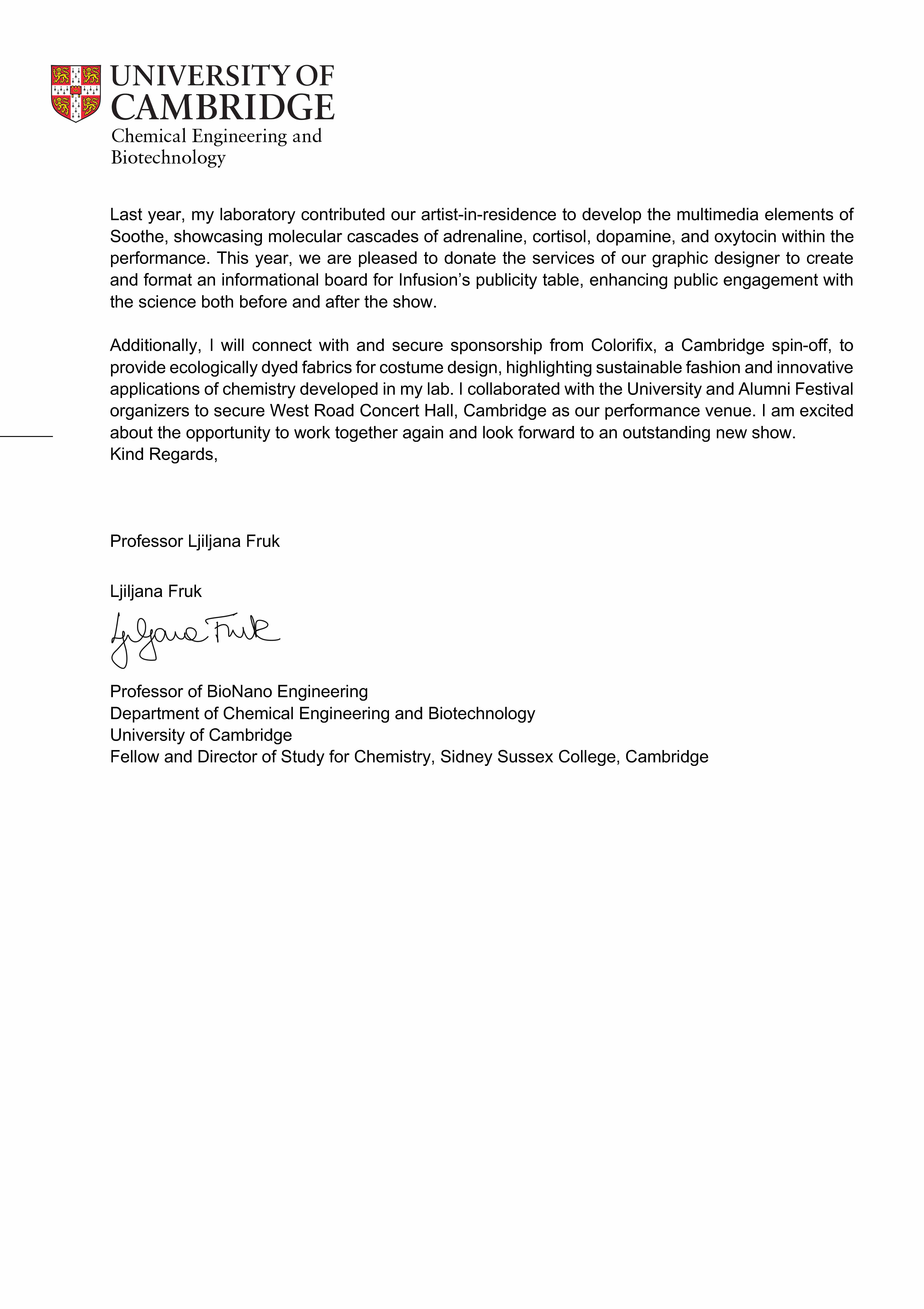 These are letters of support from partners and organizations who are current and future collaborators with Infusion Physical Theatre on this project.
